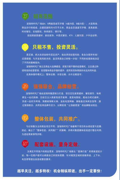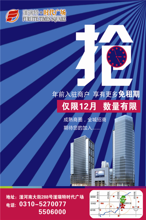 滏瑞特時(shí)代廣場(chǎng)與眾多品牌強(qiáng)強(qiáng)聯(lián)手,專門為商家量身定做屬于自己的商鋪!高品質(zhì)的產(chǎn)品伴隨著優(yōu)質(zhì)的服務(wù),無(wú)論你租與不租,滏瑞特時(shí)代廣場(chǎng)就在這里等你?。?!