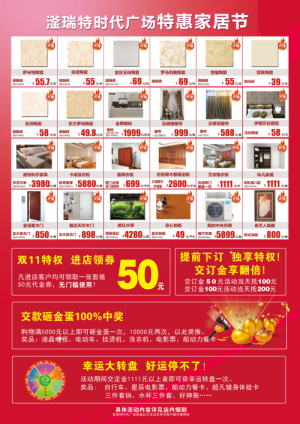 今日,全國性一年一度的“雙11”狂歡購物節(jié)拉開帷幕,我商場(chǎng)特于今日至13日舉行為期三天的“特惠家具節(jié)”。